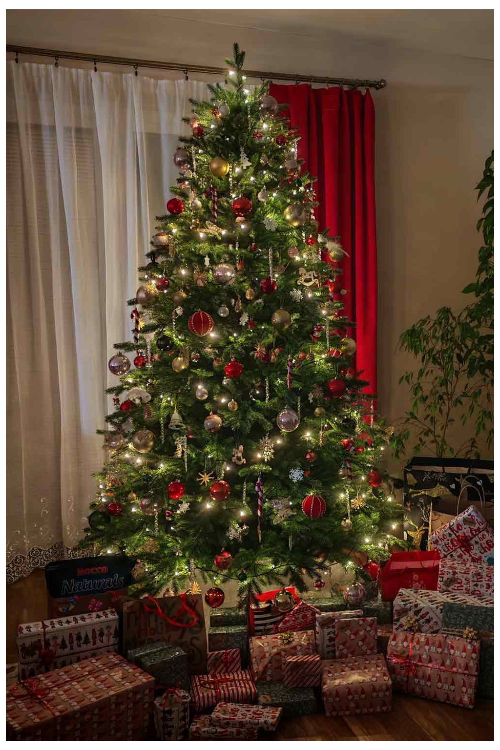 All our trees – from 150 cm to 400 cm – share the same premium materials, dense structure, and solid build. The 220 cm model below illustrates features consistent across the full range.