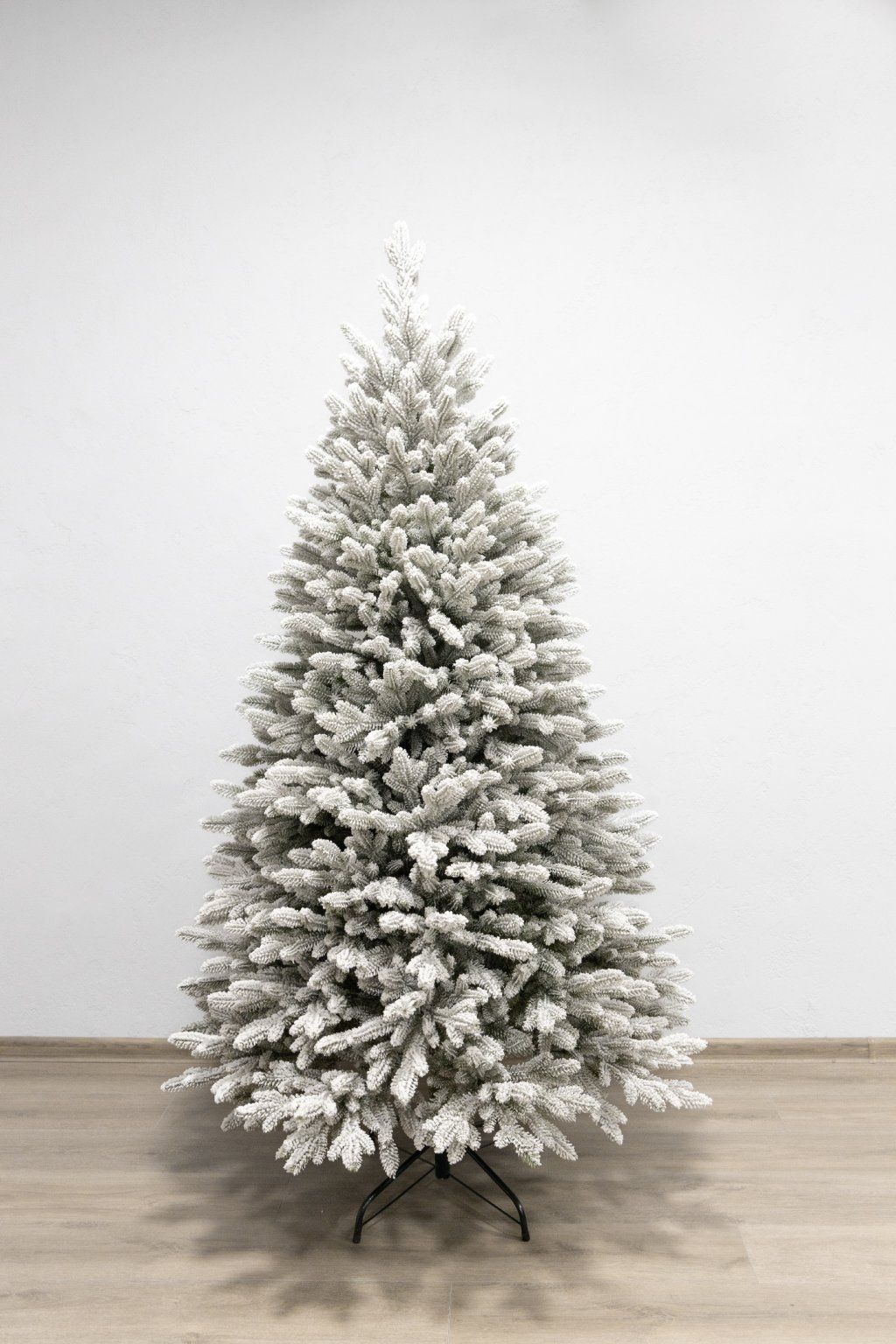 The Full 3D Christmas tree spruce with snow branch number N6 is the smaller brother of the tree number N6 Custom It differs in that it is more pointed and has a narrower shape. The tree is made purely of green 3D needles, which identically copies the needles of living trees. The branches are attached to the trunk with an umbrella system, which makes it easier to unfold the artificial tree.